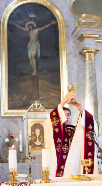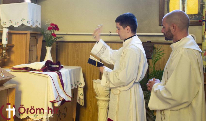 A szentmise nem a szokott módon kezdődött, hiszen Tóth László Gábor atya először megáldotta a szentmisén viselt miseruháját, majd a beöltöztetés következett.