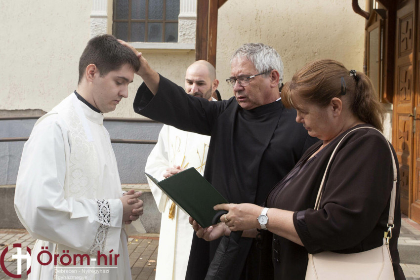 Ezután Tamás atya a szülőkhöz fordult: „Kedves szülők! Köszönjük mindazt a jóságot, szeretetet és áldozatot, amit fiatokért tettetek, hogy papja lehessen a Debrecen-Nyíregyházi Egyházmegye hívő népének. Alázattal kérlek titeket, adjátok áldásotokat újmisés fiatokra és imádságos lélekkel kísérjétek őt velünk együtt a szentmisére.”