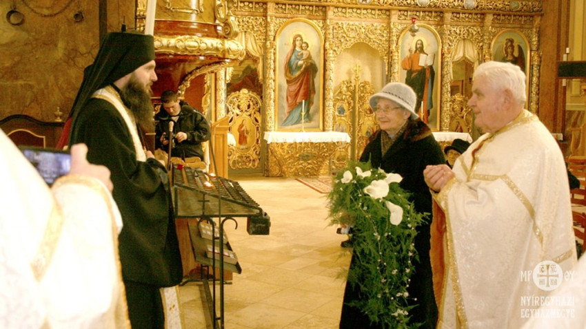 A liturgia végén, a házassági áldás után Orosz Atanáz püspök köszöntötte a jubilánsokat. Beszédében kiemelte: „hálát adunk a Magasságbelinek, aki szervezi napjainkat, jubileumot és kegyelmet, erőt ad a folyatáshoz. 1957. január 20-án, a kijárási tilalom idején, nem saját hibájukból késtek a jegyesek az esküvőről. A forradalom, illetve az azt követő terror miatt csúszott a kezdés.”