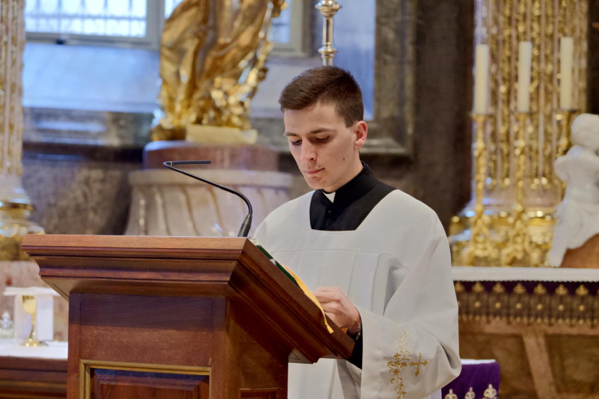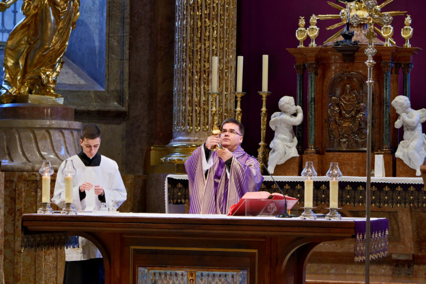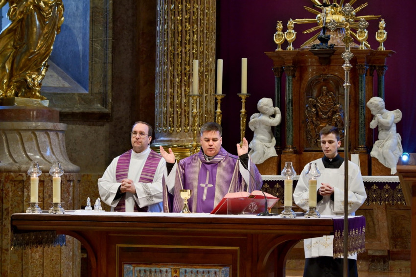 A napi evangélium kapcsán (Jn 12,1–11) Kálmán Imre atya Mária tettére hívta fel a figyelmet, aki belső indíttatásból, már a jövőre tekintve kente meg Jézus lábát a drága nárduszolajjal. Mivel családjában és benne is élt a szolgáló szeretet, a szemlélődés és a feltámadás feletti öröm, ezért tudta Mária pazarlóan adni szeretetét, aki minden bizonnyal később elnyerte Istennél jutalmát. Apor Vilmos püspök lelkületében ugyanez a szolgáló szeretet élt, így válhatott Isten előtt értékessé és érvényessé életáldozata – tette hozzá a szentmise szónoka.