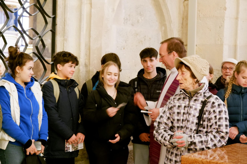 A nagyhéten el kell jutnunk oda, hogy megteremtsük önmagunkban a békét, és Isten segítségével a környezetünkben is – hangsúlyozta az iskolalelkész. – A béke eszközeivé kell válnunk. Ez alapvető volt Apor Vilmos püspök számára, aki bármikor készen állt az igazság és az igazságosság elvei mellett kiállni, szembefordulni a gonosszal, és a rábízottakat a Jó Pásztor példájára vezetni.