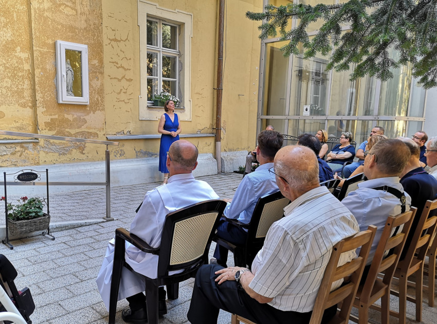 Az ünnepség után Burányi Roland, a szeretetszolgálat lelkipásztora által főzött ebéddel, beszélgetéssel, valamint a papi otthon bejárásával folytatódott a program. Az itt élő atyák közül többen is a korábban szemináriumként működő épületben voltak papnövendékek, ezért sok személyes történetet osztottak meg a vendégekkel az épület megtekintésekor.