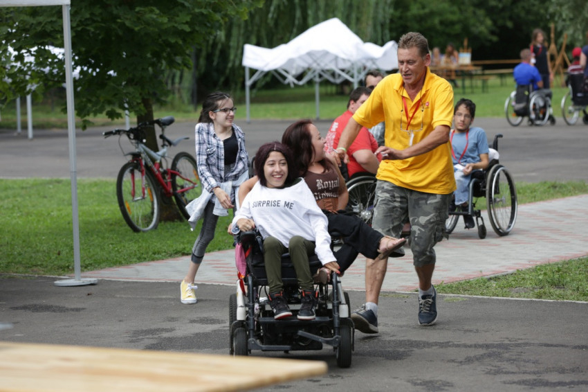 2012-ben volt Magyarországon nemzetközi mozgássérült máltai tábor, akkor állítottunk először gyógyászati segédeszköz javító sátrat. Azóta minden mozgássérült táborban ott vagyunk. Egy-két nappal korábban lemegyünk, akadálymentesítjük a környezetet, felállítjuk a sátrakat, mindent előkészítünk. Ha igénylik, szobánként lebontunk egy-egy emeletes ágyat, és beviszünk a helyére egy elektromos kórházi ágyat arra az egy hétre. Leviszünk 30-40 darab tolókocsit, szobavécét, rollátort, és ameddig szervizeljük valakiét, addig átültetjük őt a miénkbe. Vagy ha le kell vinni a Balatonba, akkor a mi tolókocsinkat használják, hogy ne az övék merüljön vízbe. Már fél évvel előre elkezdjük gyűjtögetni az eszközöket, a betegemelőtől a tolókocsiig, ezeket félretesszük a táborra.