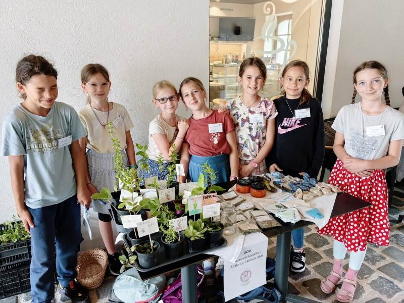 A délután folyamán a gyerekek standokon mutatták be munkájuk eredményét, a legkülönbözőbb termékeket, amelyeket – egyelőre nem kereskedelmi céllal, hanem próbaképpen – a kerti termésekből állítottak elő, mint például levendulás fürdősó, padlizsánkrém, fűszeres olaj, mentás cukorka, stb.
