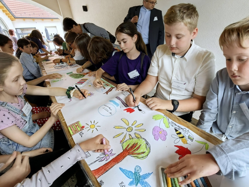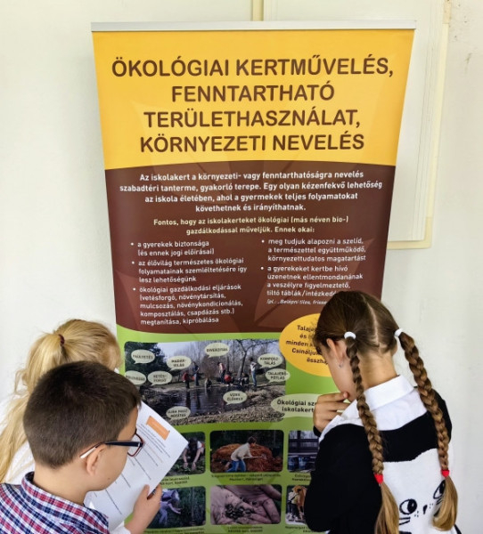 A kiállítást háromállomásos játékos forgatag követte. Egyik állomás egy „szabadulószoba” volt: ökológiai kérdőív kérdéseinek helyes megválaszolásával kapták meg a lakatot nyitó kódot a gyerekek. A második állomáson körjátékokat játszottak, amelyekben az állat- és növényvilággal kapcsolatos tudásukra is szükség volt. A harmadik állomáson egy olyan közös rajzfolyam készült, amelyben mindenki kifejezhette, milyennek szeretné látni a jövő iskolakertjét, miért fontos számára az iskolakert. A nap végén az elkészült rajzokat átadták az EKIF képviselőjének, Kovácsné Csillár Zsuzsának, az Iskolakert program koordinátorának.