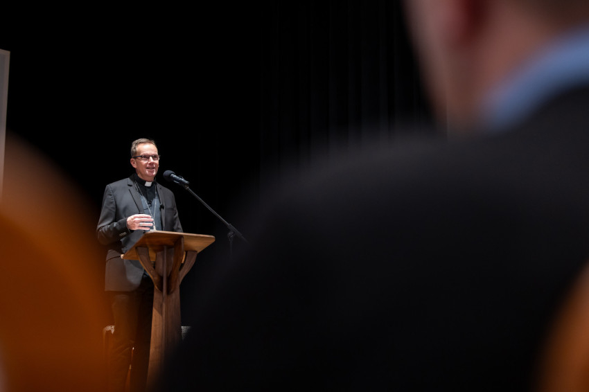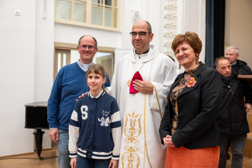 A családokat – kiemelten a gyerekeket – köszöntő főpásztor arra biztatott Krisztus Király ünnepének előestéjén, hogy „engedjük be életünkbe a kopogtató Jézus Krisztust, adjunk neki életünkben fő helyet, hogy ő legyen a forrás, a támasz számunkra”.
