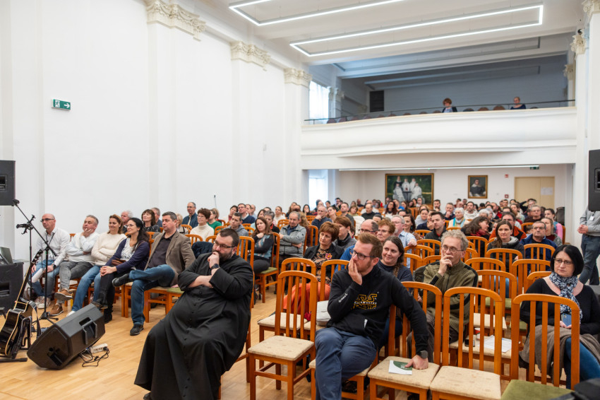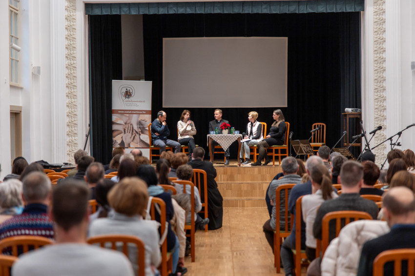 Az előadást követő kerekasztal-beszélgetés lehetőséget adott egy 4 gyerekes házaspár és egy, gyermekét egyedül nevelő anya életére ránézve áttekinteni, hogyan születnek meg a válaszok konkrét élethelyzetekben.