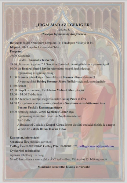 10 órakor Bogárdi Szabó István református püspök hirdet igét Irgalmasság és igazság(osság) címmel.