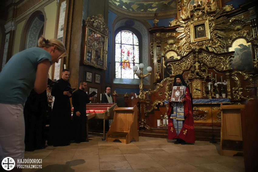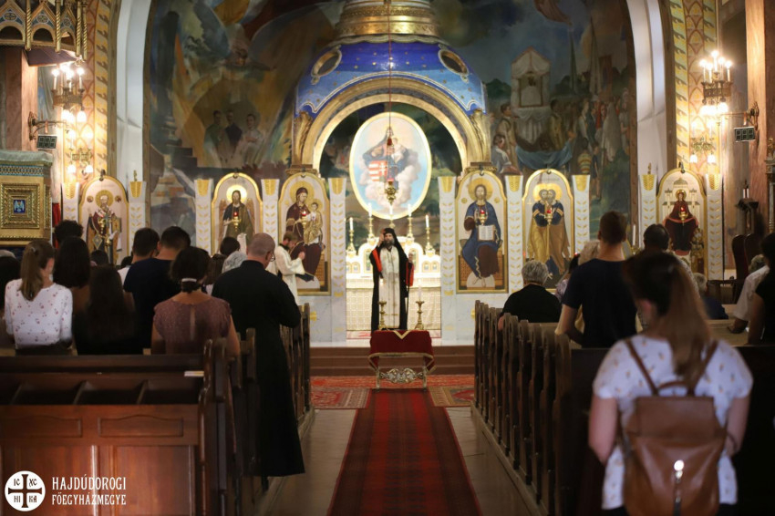 Debrecenben mintegy ötvenen gyűltek össze augusztus 11-én este a nyitóvecsernyére a főszékesegyházban, ahol Kocsis Fülöp metropolita köszöntötte a helyben és a virtuális térben bekapcsolódókat. Prédikációjában a főpásztor vigasztalta és lelkesítette a zarándokokat. Elmondta: nem volt egyszerű megvalósítani e rendhagyó formátumot, de ha ezen felülemelkedünk, akkor talán még mélyebb tartalmat kaphatunk az idei zarándoklattól, mint eddig bármikor.