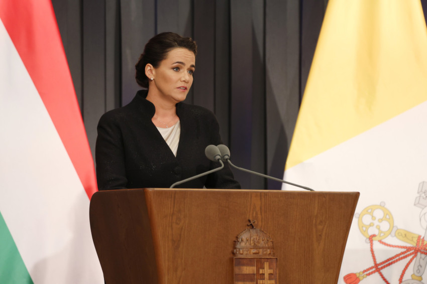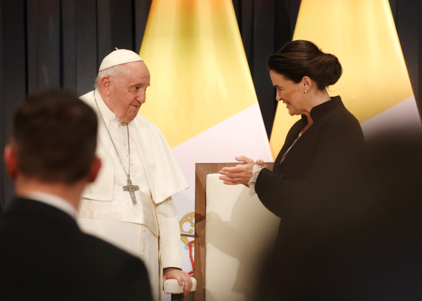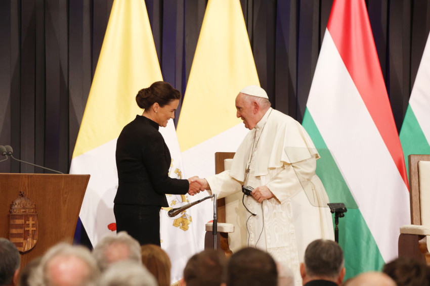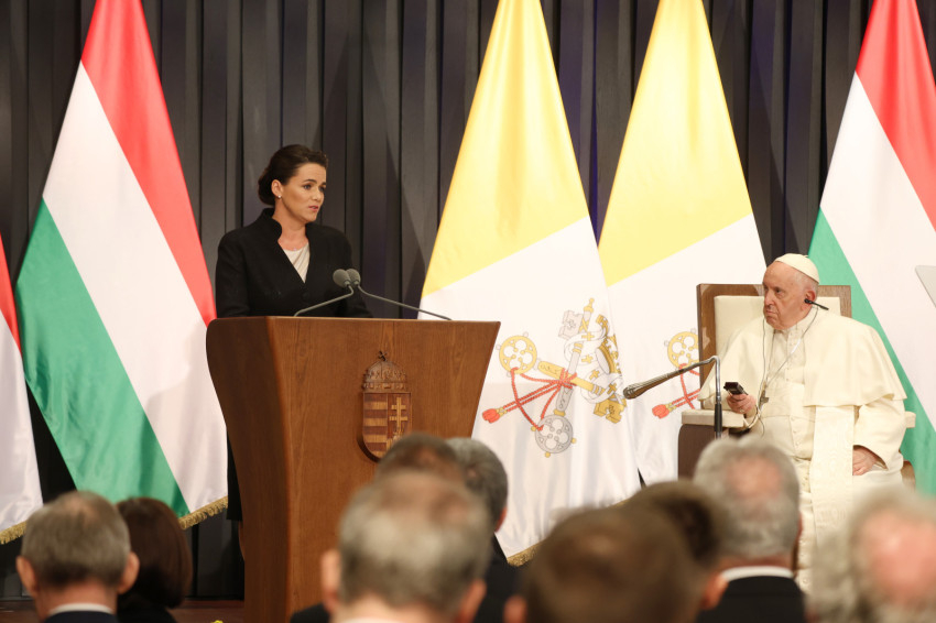 Novák Katalin hangsúlyozta, hogy ma különösen oda kell figyelnünk a szükséget szenvedőkre, csodálatos példát mutató szentjeink nyomán, mint Szent Erzsébet, aki a rászorulók, kiszolgáltatottak, menekültek segítésének, az irgalomnak a szimbólumává vált. Szent Erzsébet élete is igazolja, hogy a nők különös felelőssége rámutatni: jó kormányzás irgalmasság, a kiszolgáltatottak iránti szolidaritás nélkül nem lehetséges. Az államfő elmondta, hogy ajándékai között ott vannak Szent Erzsébet rózsatövei, és kérte, a pápa rájuk tekintve gondoljon mindazokra, akiknek lelki táplálékot ad, örömet és reményt hoz látogatásával és szolgálatával.