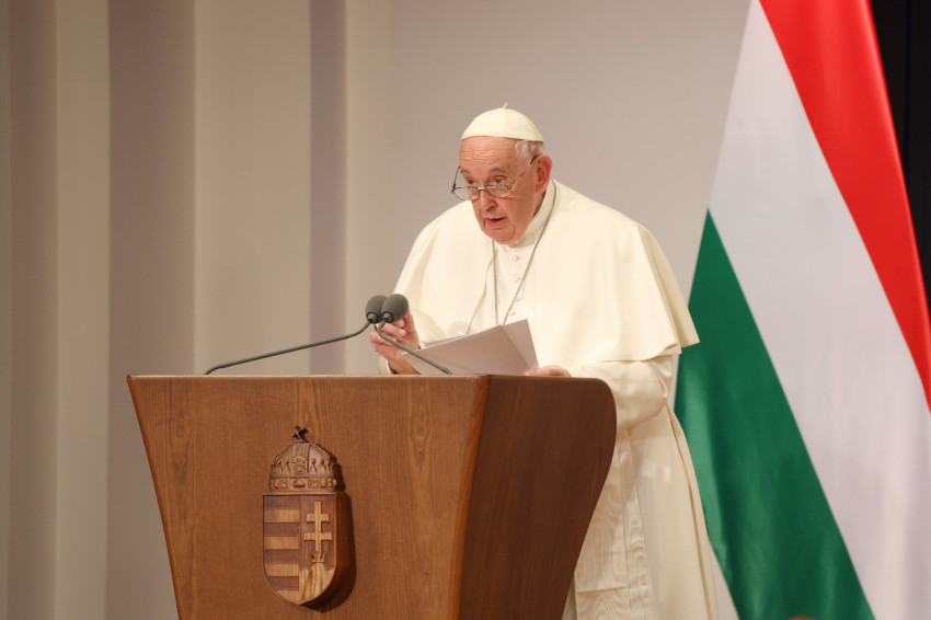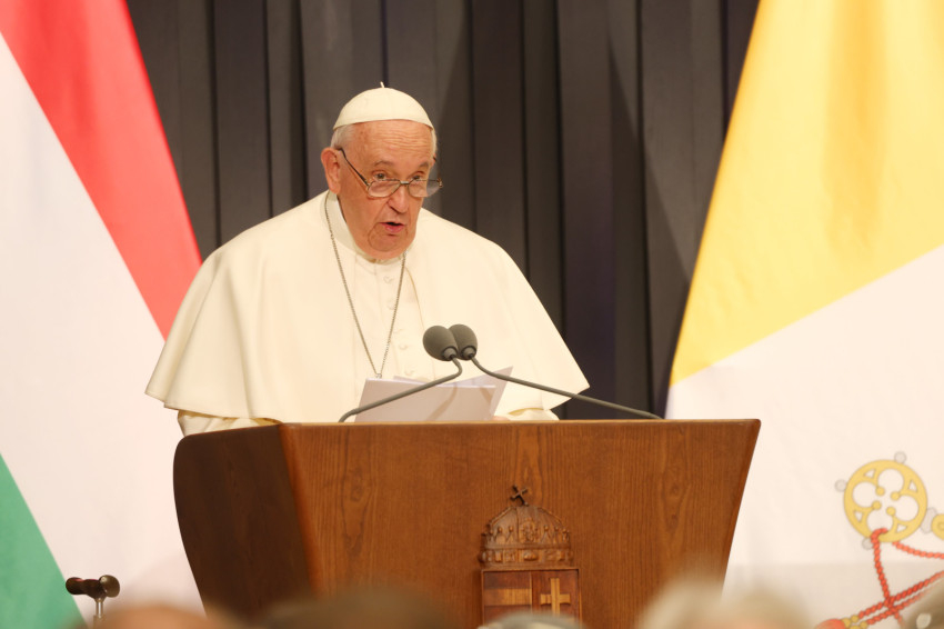 „Isten hozta Önt, a béke emberét Magyarországra!” – köszöntötte a Szentatyát. Kiemelte, hogy budapesti látogatása kairosz, az éppen alkalmas pillanat és hely a találkozásra. Mindszenty József bíborost idézte: „Egy nemzet felemelkedése mindig a mai napon kezdődik. A fásultakban is van parázs a hamu alatt, csak a tűzre várnak.” Kifejezte reményét, hogy a Szentatya magyarországi látogatása elrugaszkodás lehet ehhez a felemelkedéshez. „Bátorítást, iránymutatást, megerősítést várhatunk és várunk is – tette hozzá – egy békésebb, demokratikusabb, erősebb Európához vezető úthoz.”