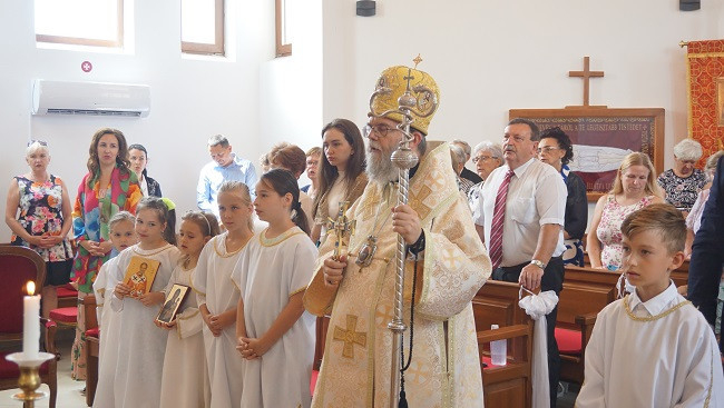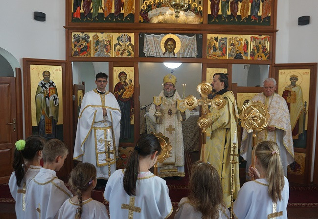 „Az idei templombúcsún tökéletesedik a templomszentelés, hiszen görög templomainkhoz szervesen hozzátartozik a képállvány, ahol a mi Urunk Jézus Krisztusnak és szentjeinek képét láthatjuk” – mondta Orosz Atanáz püspök a templombúcsú szertartásán, majd hozzátette azt is, hogy ábrázolásukkal egy kis betekintést nyerhetünk a mennyországi létbe. „Látjuk szemünk előtt a szent apostolokat, akik egyszerű mezítlábas emberekből lettek szentek. Látjuk a prófétai jeleneteket és látjuk a kiválasztott szenteket, köztük templomunk védőszentjét, Szent László királyunkat.”