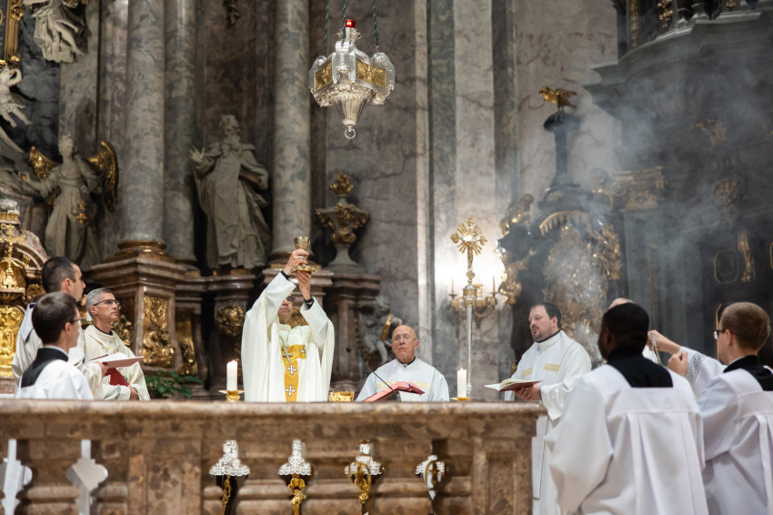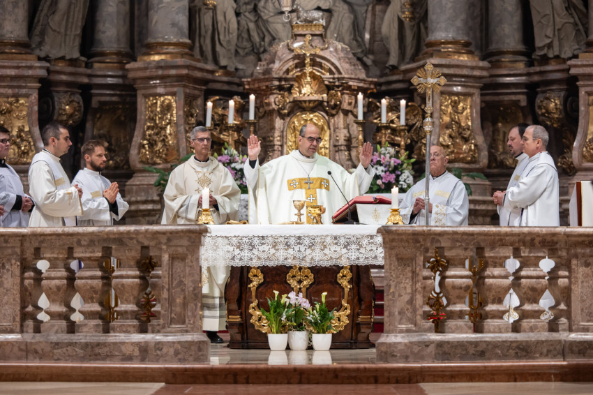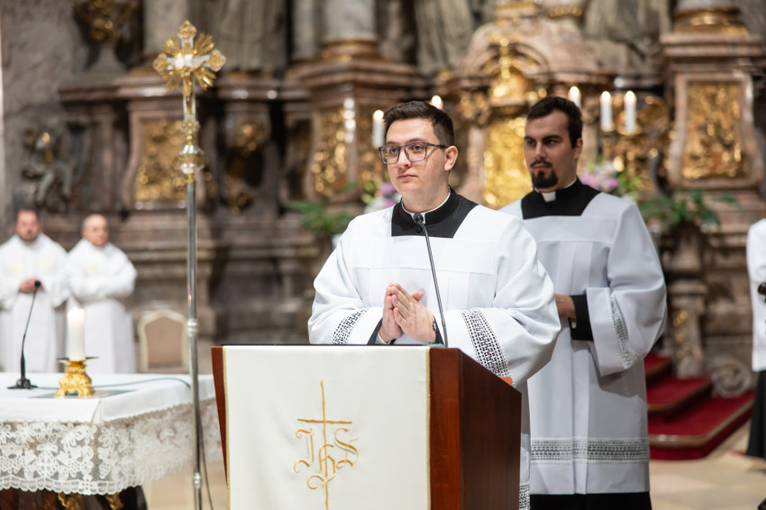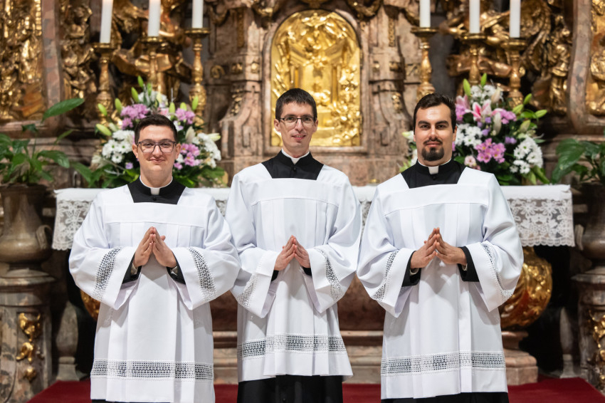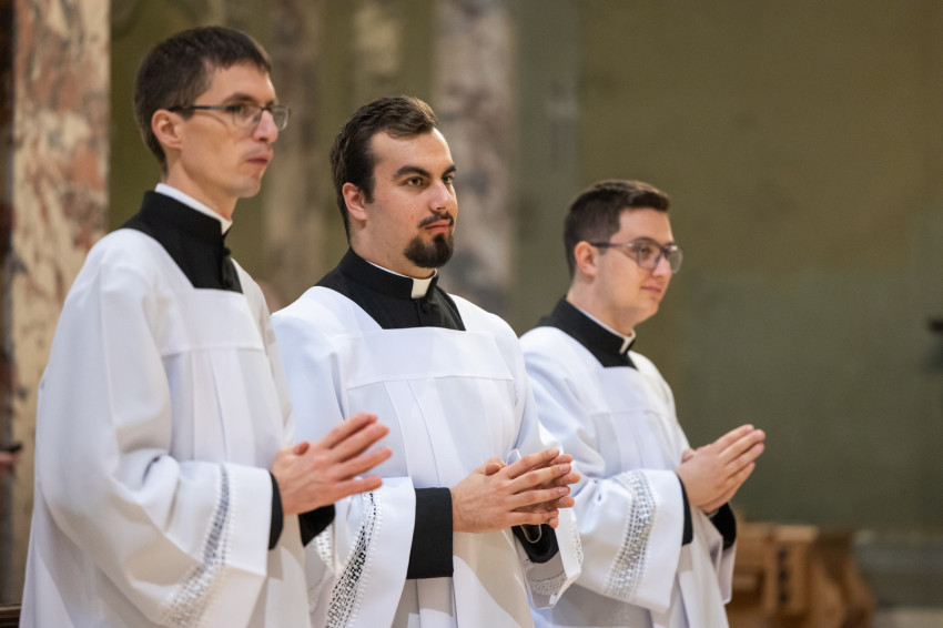 A mai napon valami hasonló történik. A három papnövendék éveken át készül a hivatására, most pedig odalép hozzájuk a Jóisten, és megérinti a lelküket, az élet igéjének hirdetőjévé, az élet kenyerének kiosztójává téve őket.