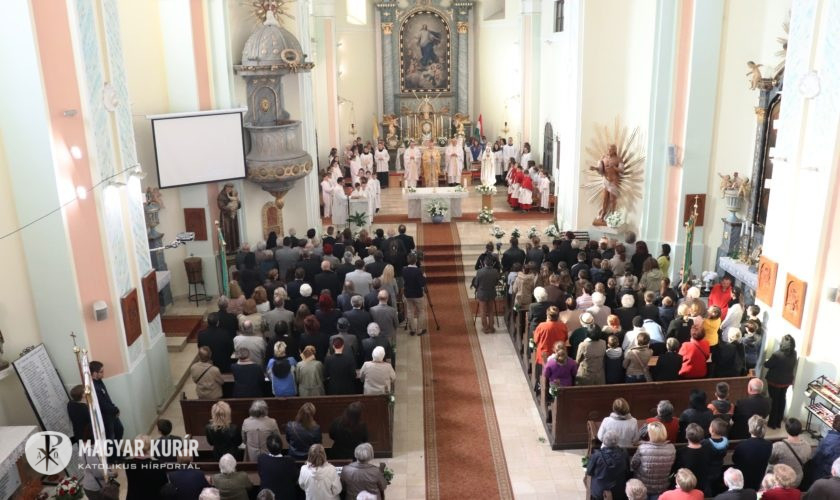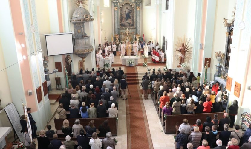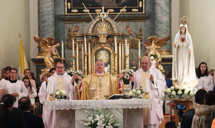 Az isteni kegyelem végtelen, mely elhalmoz bennünket ajándékaival napról napra – fogalmazott a nuncius a szentmise kezdetén. A fatimai jelenések centenáriuma alkalmából figyelmeztette a jelenlevőket: soha nem szabad elfelejteni hálát adni. Isten örömre hív, boldogságra teremtett bennünket. Ezt az örömet meg kell élnünk önmagunkban és a közösségben egyaránt. A Szűzanya üzenetet közvetített az egész emberiség számára: az ateista diktatúra véget ér a világban, és az Egyház újjászületik. Ez a csoda a szemünk láttára megtörtént, mert az emberek kitartottak, hála a fatimai üzenetnek. Isten nem feledkezik meg rólunk, nem hagy minket elveszni, ha mi, hívek hittel, szeretettel, odafigyeléssel követjük az Ő akaratát, szándékát – mondta Pintér Gábor.