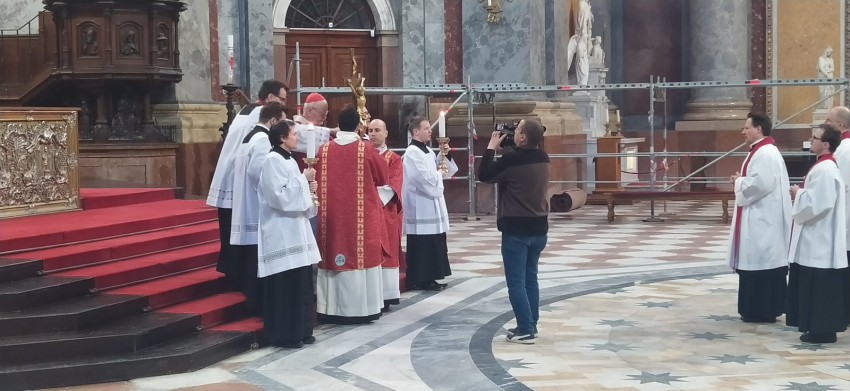 Erdő Péter bíboros, prímás vezette a nagypénteki szertartást április 15-én az esztergomi Nagyboldogasszony és Szent Adalbert-főszékesegyházban.