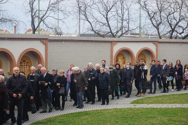 Nagypéntek délutánján idén újra hívekkel telt meg a miskolci görögkatolikus székesegyház templomudvara a sírbatételi körmeneten, majd magában a székesegyházban is, ahol Orosz Atanáz püspök vezetette a szertartást.