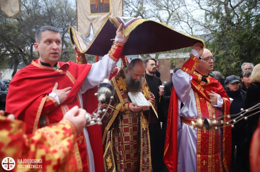A debreceni Attila téri főszékesegyházban nagypénteken sírbatételi vecsernyét végzett a papság Kocsis Fülöp metropolita vezetésével, majd a hagyományoknak megfelelően körmenet indult.
