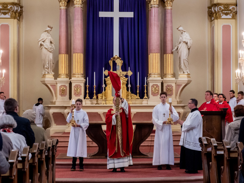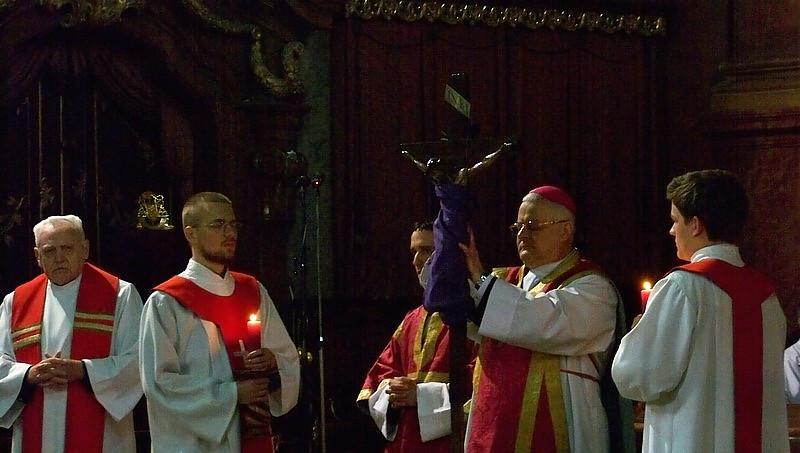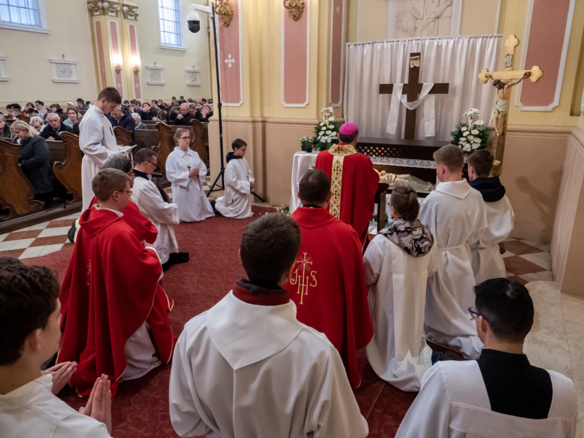 Krisztus kínszenvedésének, kereszthalálának és sírba tételének napján Varga László megyéspüspök vezetett nagypénteki szertartást a kaposvári Nagyboldogasszony-székesegyházban.