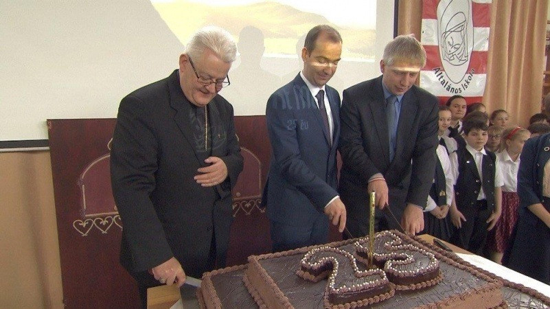 Istennek számtalan jót kell megköszönnünk, mert az elmúlt 25 esztendőben megmutatta, hogy gazdagsága, nagysága meghaladja minden képzeletünket, minden vágyunkat. Megszülethetett ebben a városban is egy iskola, amely egyre magasabb színvonalon, egyre méltóbb és szebb körülmények között végezheti munkáját Isten tevékeny szeretete által – fogalmazott a püspök, és külön megemlékezett Nagy László plébánosról, aki élete utolsó szakaszában minden energiájával támogatta az intézményt.