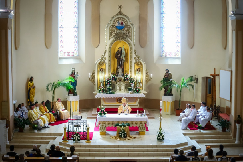 Felszentelésük után a két új harangot felhúzták a toronyba, majd az asszisztencia bevonult az ünnepi szentmisére, amelyet Bábel Balázs kalocsa-kecskeméti érsek celebrált.