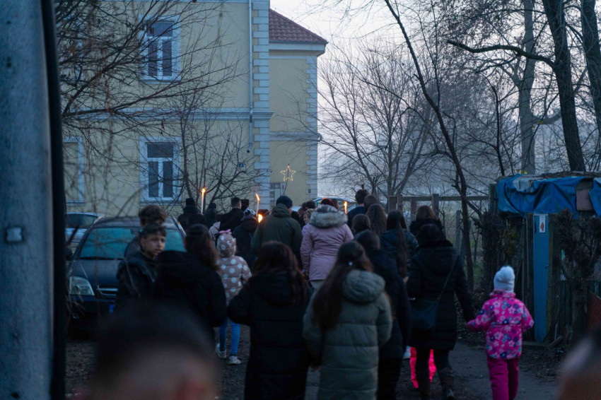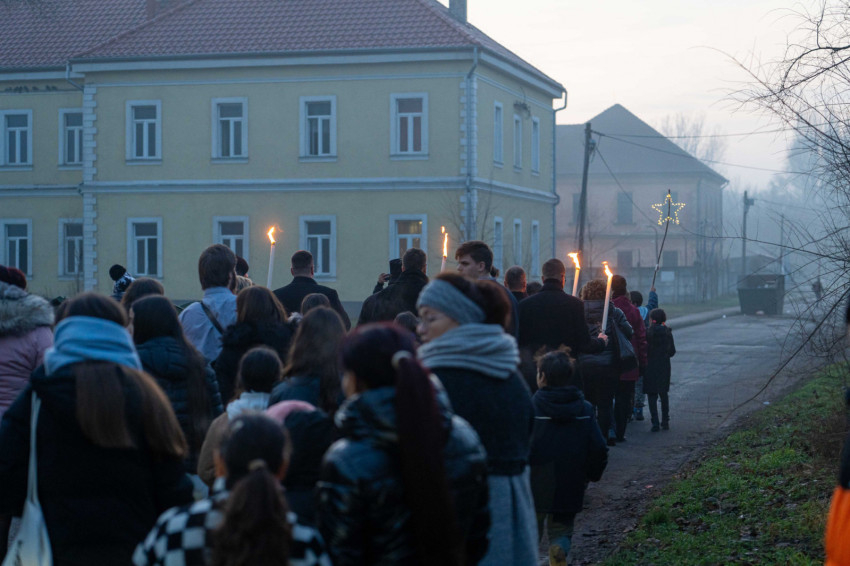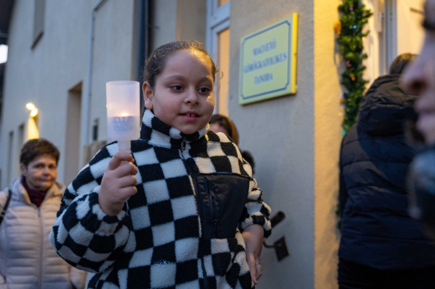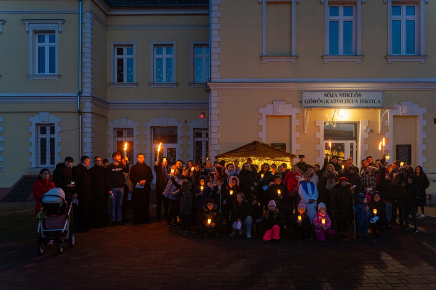 A kántálók, akik között voltak az iskolában tanító pedagógusok és szülők is, a Huszártelepen található Sója Miklós Görögkatolikus Általános Iskoláig sétált, ahol az udvaron felállított betlehem hívogatta fényesen az embereket.