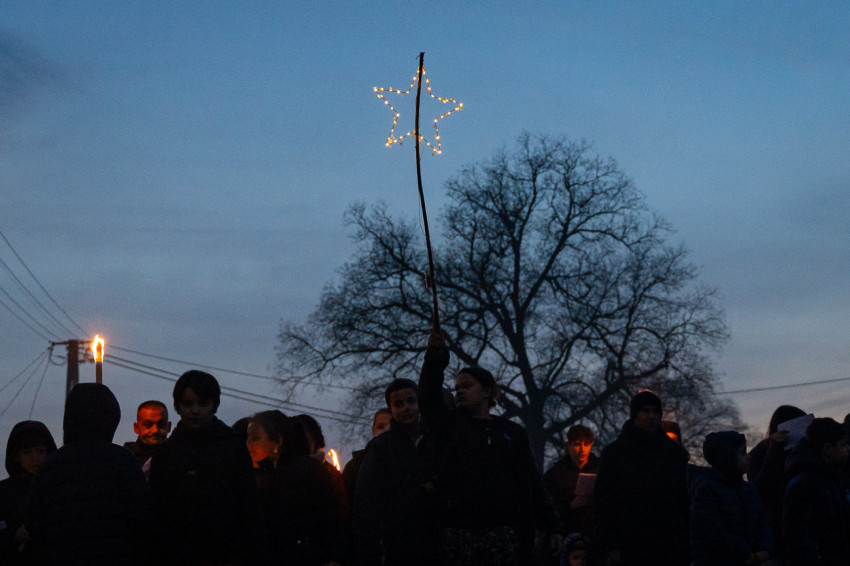 Valamiféle útjelzőre nagy szükség volt a huszártelepi kántálós „zarándokút” során, hiszen alkonyatkor szürke köd és szmog ereszkedett a városra. Így a menet elején – a Máriának és Józsefnek öltözött gyermekek előtt – a magasan tartott csillag, de a fáklyák és a gyertyák is utat mutattak a több mint ötvenfős, gyermekből és felnőttekből álló kántáló közösségnek.