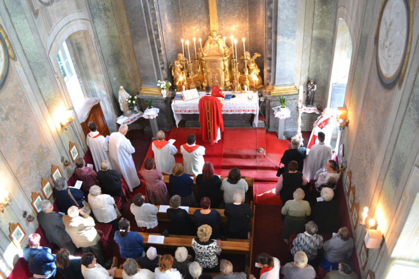 A kastélykápolna Johann Zircler csodálatos mennyezetképével és oltárképként a kereszttel jelentős értéket képvisel a felújításra szoruló páratlan szépségű épületben. Az elmúlt évben pályázati forrásból sikerült a kápolna ablakait az örökségvédelmi előírásoknak megfelelően kicserélni.