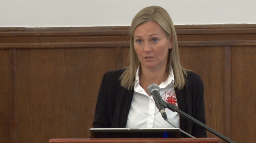 Klesitz Angella, a székesfehérvári RÉV Szenvedélybeteg-segítő Ambulancia terápiás munkatársa a karitászönkéntesek szenvedélybetegséggel való találkozásáról, szerepükről tartott előadásában a függőségről és annak kialakulásáról, kezeléséről beszélt. Előadásában többek között azt hangsúlyozta: a szenvedélybetegeknél annak megértéséhez kell eljutni, hogy van értelme meggyógyulni, és ebben a szakember egyedül nem biztos, hogy tud segíteni. A gyógyulás a lélek szentélyében megy végbe, és ehhez Isten kegyelme is kell, melyben a krisztusi szeretet által részesülhet valaki. Ezt a krisztusi szeretetet viszi magával és adja át a karitászmunkatárs egy-egy találkozás alkalmával.