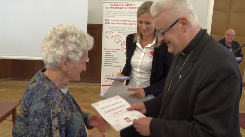 A kilencvenéves Kovács Istvánné (Székesfehérvár-Vasútvidék); valamint a harminc éve önkéntesként segítő Battai Istvánné Klári, Rózsa Istvánné Kinga (Érd-Postástelep); Szíjártó Pálné, Balázs Károly, Szauerné Fetter Terézia Blandina OSB (Pilisvörösvár); Liszits Mária (Székesfehérvár-Öreghegy); Zemlényi Katica, Busicsné Pap Anna, Virágh László, Ledniczky Jánosné, Polácska Erzsébet (Székesfehérvár-Almássy telep); Kovácsné Fodor Mária, Ódor Györgyné és Emperger Jánosné (Iszkaszentgyörgy) valamennyien önkéntes karitászmunkájuk elismeréseként vehettek át oklevelet a főpásztortól.