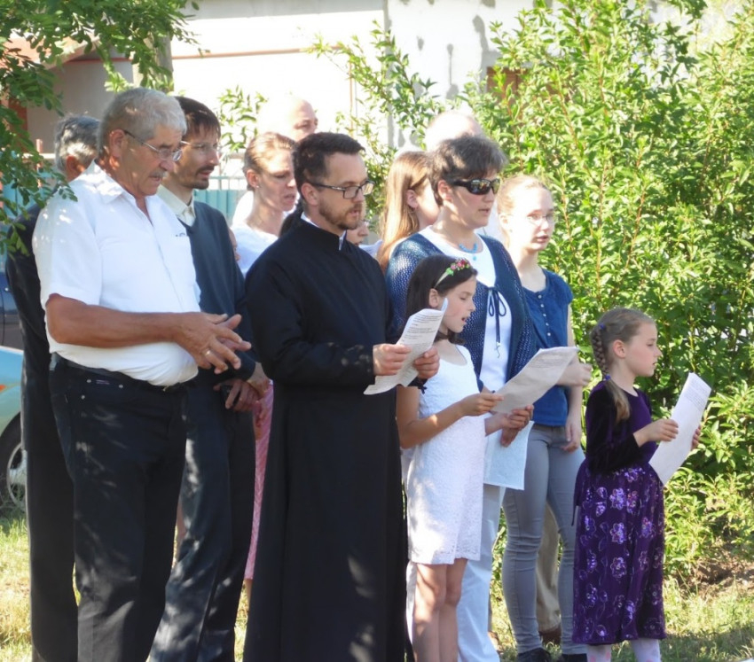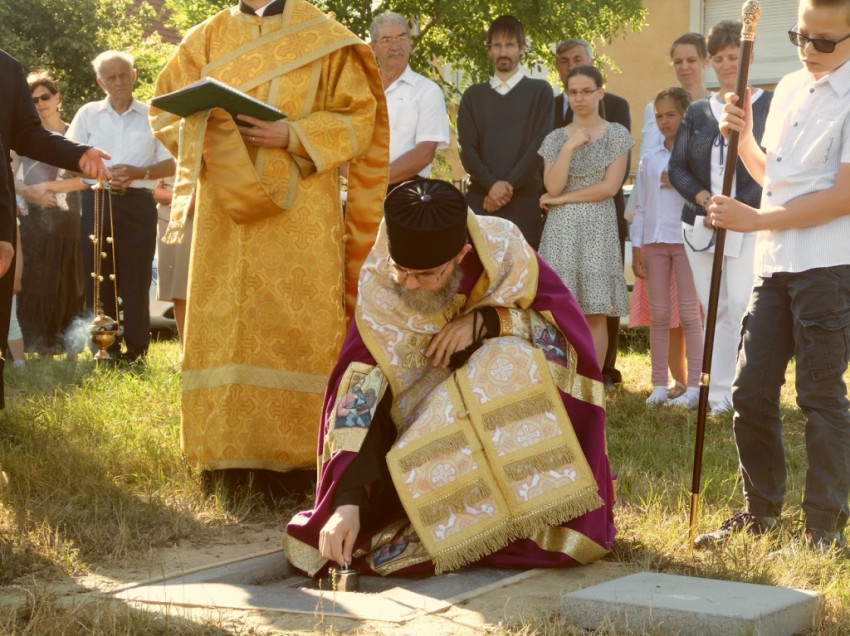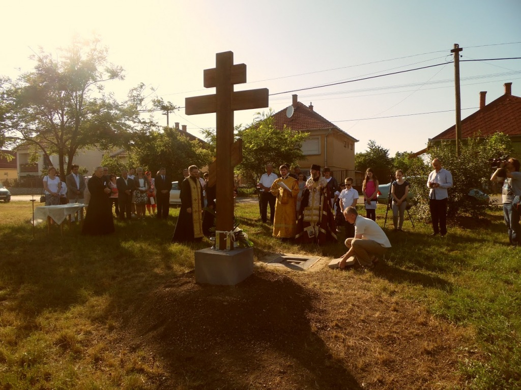 A reményteljes kibontakozás első jele az épülő templom területén elhelyezett és megáldott kereszt – mondta Demkó Balázs atya a keresztmegáldás szertartása előtti köszöntőjében. Emlékeztetett: „Isten áldása kell minden olyan emberi tervhez, ami nemzetet és egyházat akar bővíteni.”