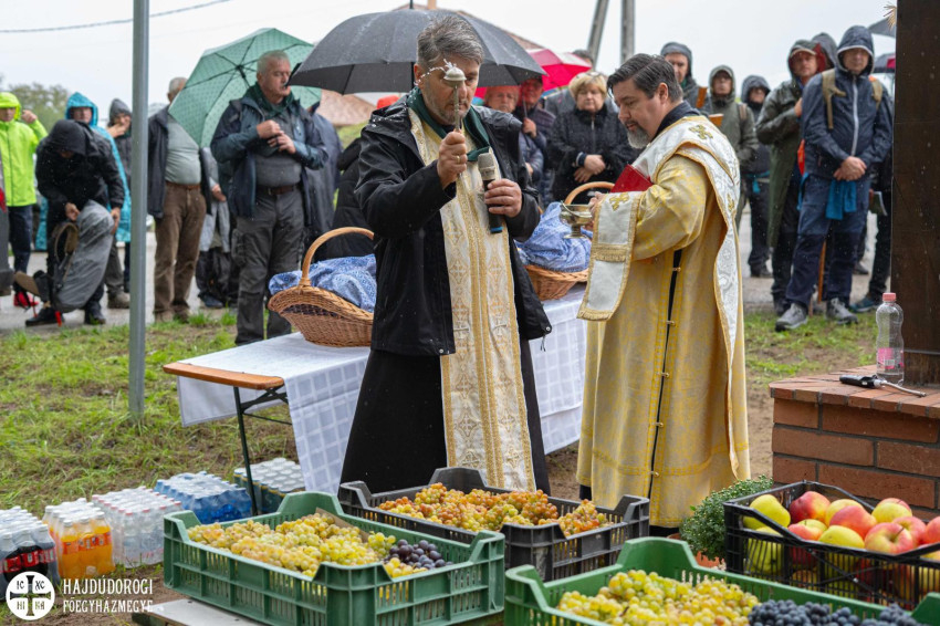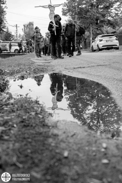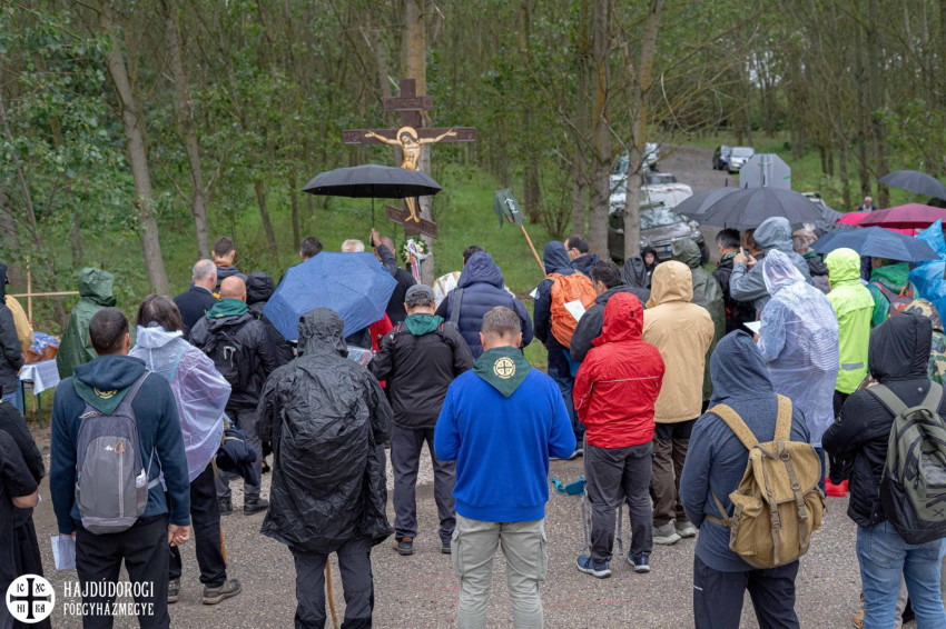 A csapókerti templomtól indult idén is a zarándoklat. Martinkán minden évben meg szoktak állni az édesapák: a Sámsoni és Debreceni út kereszteződésében pihennek meg az első 10 kilométer után, imádkoznak, reggeliznek. Most sem volt ez másként. Az évek alatt fogalmazódott meg bennük a gondolat, hogy milyen nagyszerű lenne keresztet állítani erre a helyre.