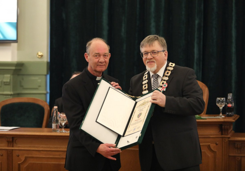 Berkes Gyula, a Szent Kamillus-templom plébánosa az Egyház szolgálatában és Győr érdekében kifejtett több évtizedes, magas színvonalú hitéleti és oktatói munkássága, valamint példás közösségépítő tevékenysége elismeréseként vehette át a díszpolgári címet.