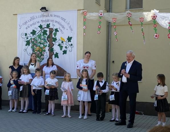 A ballagók mellett az óvoda is díszbe öltözött; a falon János evangéliumának részlete volt olvasható: „Én vagyok a szőlőtő, ti a szőlővesszők. Aki bennem marad, s én benne, az bő termést hoz. Maradjatok meg szeretetemben.”