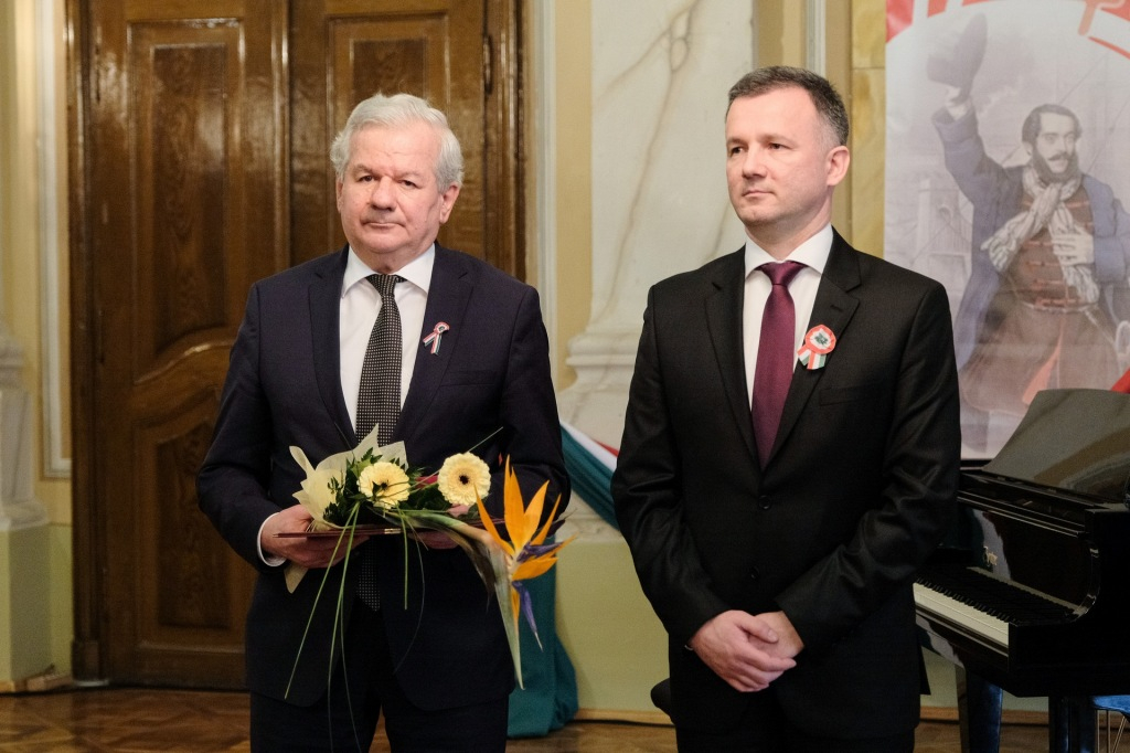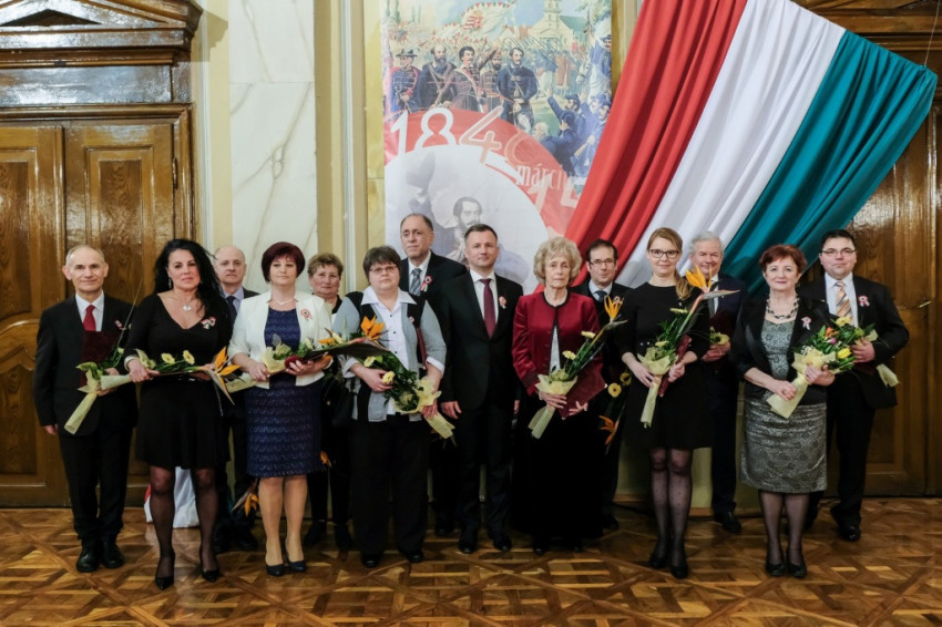 Azzal, hogy az önkormányzat a legrangosabb városi elismeréseket épp március 15-én adja át, a hősök iránti tiszteletét is kifejezi – mutatott rá a polgármester, majd átnyújtotta a díjakat.