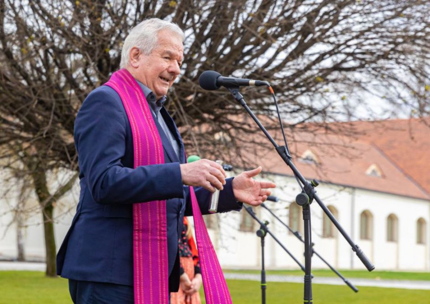 Mielőtt megáldotta, Kiss-Rigó László szeged-csanádi püspök úgy fogalmazott a keresztről: nagyon sok pozitív érték szimbóluma, erőt ad a küzdelemhez is. Most újabb küzdelmek vannak a világban, bennünket is érintenek. Sokan támadják, tagadják értékeinket.