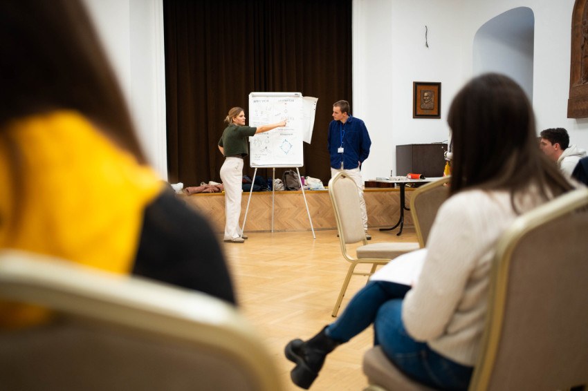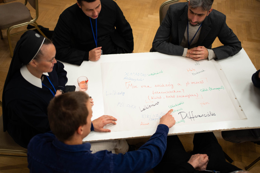 A facilitátor, Walter Dóra arra buzdított mindenkit, hogy tudatosan a Szentlélekre figyelve jegyezze fel, hogy mi mozgatja meg leginkább az elhangzottakból. A vezetőképzések és a vezetői helyzetek bemutatása ennek a szempontrendszernek és figyelemnek hála inspiráló módon tárta fel a közösségek más és más hangsúllyal bíró gazdagságát. Végül minden közösségnek lehetősége volt kiscsoportban megosztani az egyéni reflexiós jegyzeteket. Ezután ebédszünet következett, mely során spontán módon folytatódott a tapasztalat- és eszmecsere.