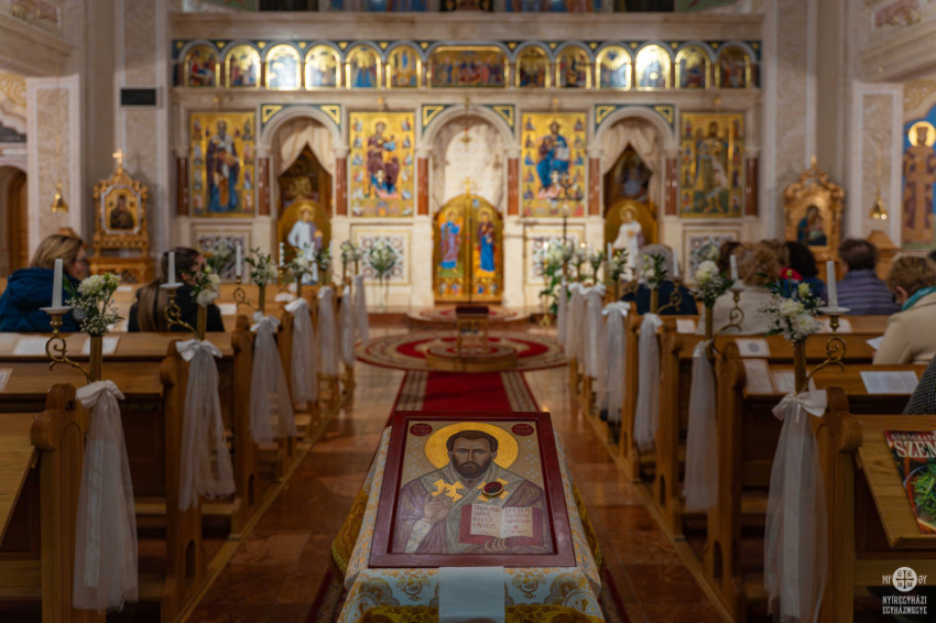 A rövid imádság után mindenkit személyesen is köszöntött a hierarcha, és a közösségi terembe invitálta a vendégeket, akik a Nyíregyházi Ruszin Nemzetiségi Önkormányzatnak és a hívek felajánlásának köszönhetően finomságokat fogyaszthattak.