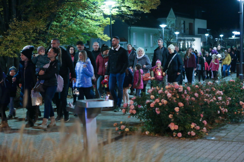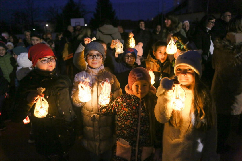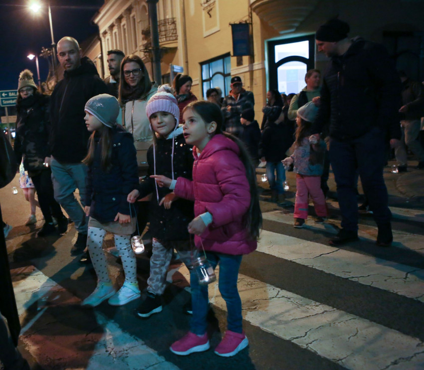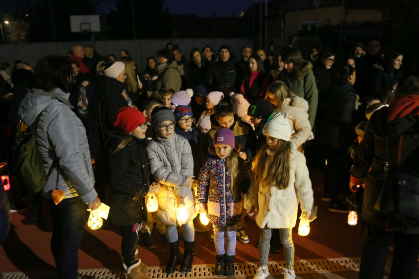 A lampionos felvonulásra az iskola hagyományának megfelelően nemcsak a Szent László-iskolába járó gyermekeket és szüleiket, de az óvodásokat is nagy szeretettel és kis ajándék lámpásokkal várták.