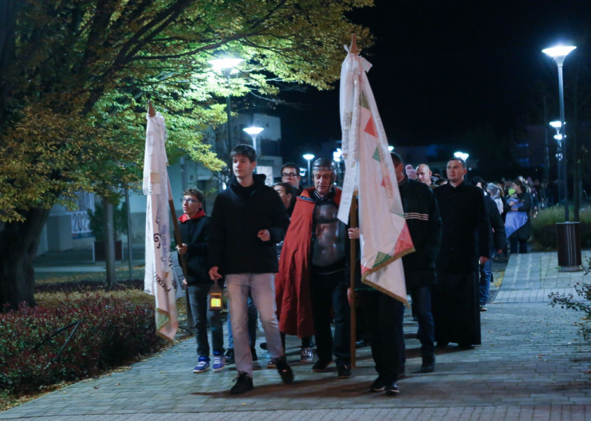 Sárváron vasárnap este ezerötszázan vonultak a katolikus iskola épületétől – az Ady utcán, a Posta téren és a Hild parkon át – a Szent László-templomhoz.
