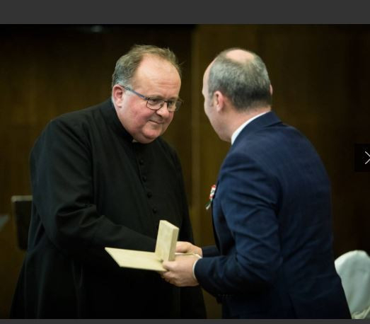 Az értékmegőrzés területén végzett példaértékű tevékenysége, valamint közösségi munkája elismeréseként vehette át az érdemérmet Schall Tamás atya.