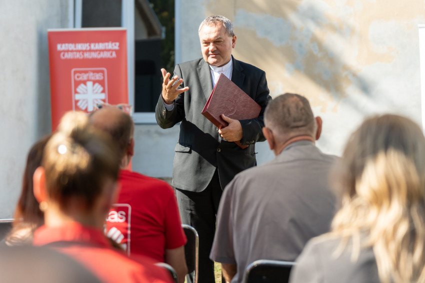 A sok keserű életnek „a rájuk romlott szeretet” az oka, melytől csípős a szó és a gondolat. Ők azok, akikkel nem szeretünk találkozni, mert szavaikból a bántás és a keserűség, a zavar, a botránykeltés és a lejáratás szándéka árad. „Adjunk hálát Istennek, hogy a szeretetszolgálat küldetését megélhetjük, egyben kérjük Isten gazdagító áldását, hogy ez a ház a remény és a szeretet otthona legyen” – zárta köszöntőjét Felföldi László püspök.