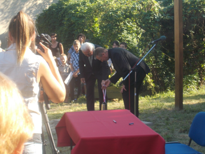 Ezután Csáki Tibor felolvasta a leendő gimnázium alapító okiratát, amelyből az is kiderül, hogy az iskola első igazgatója Prehodáné Nagy Éva lesz. A dokumentumot Beer Miklós és Pásztor Béla látták el kézjegyükkel. Az aláírás után történt meg az alapkőletétel.