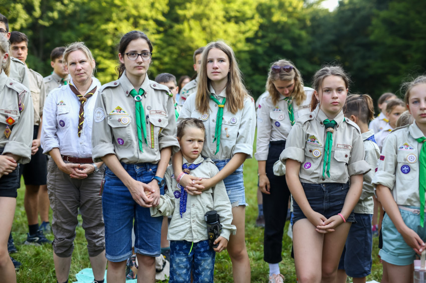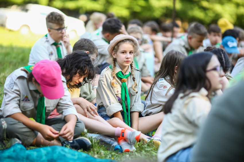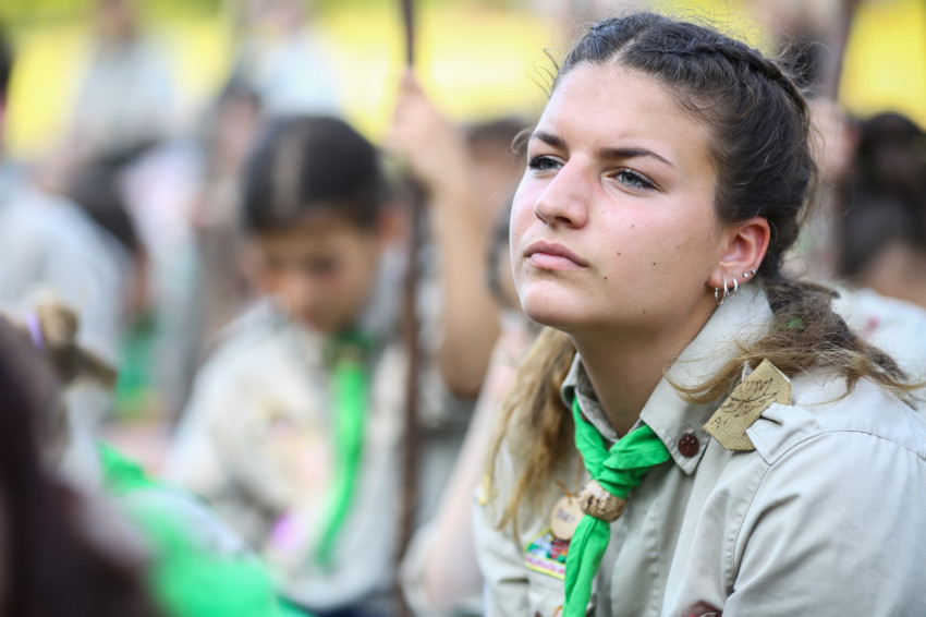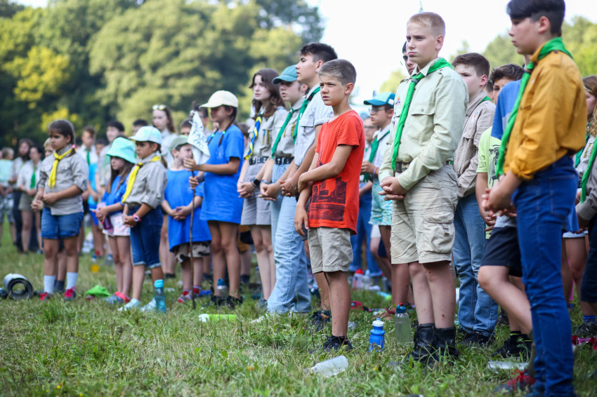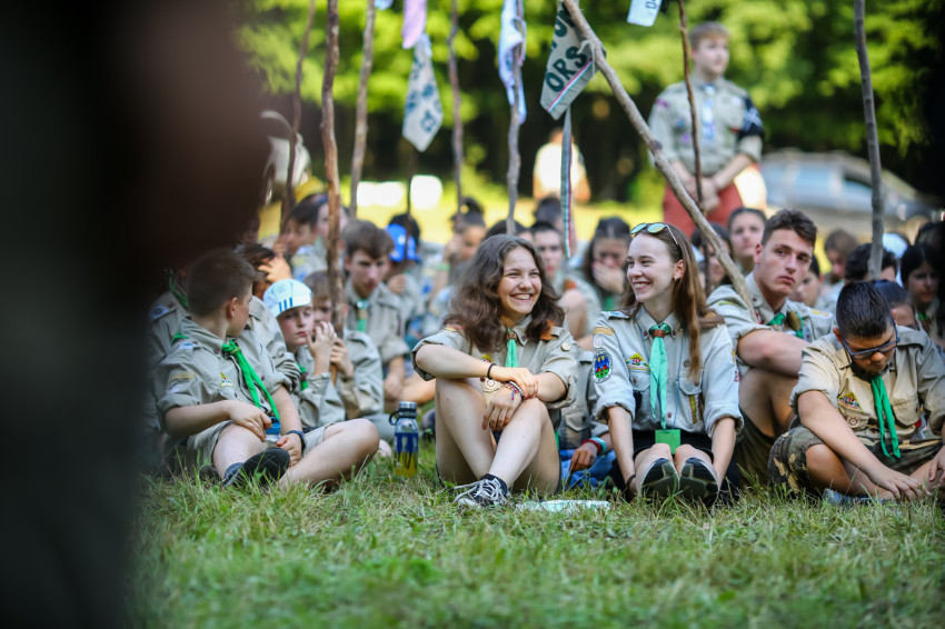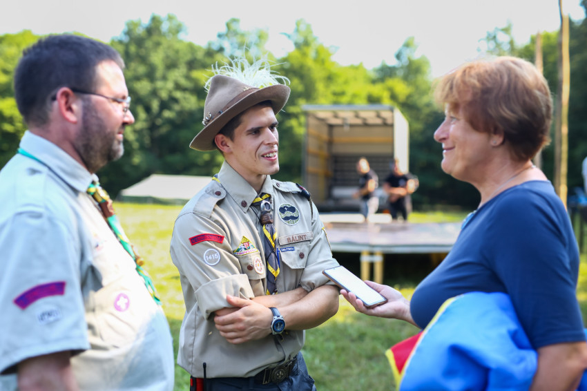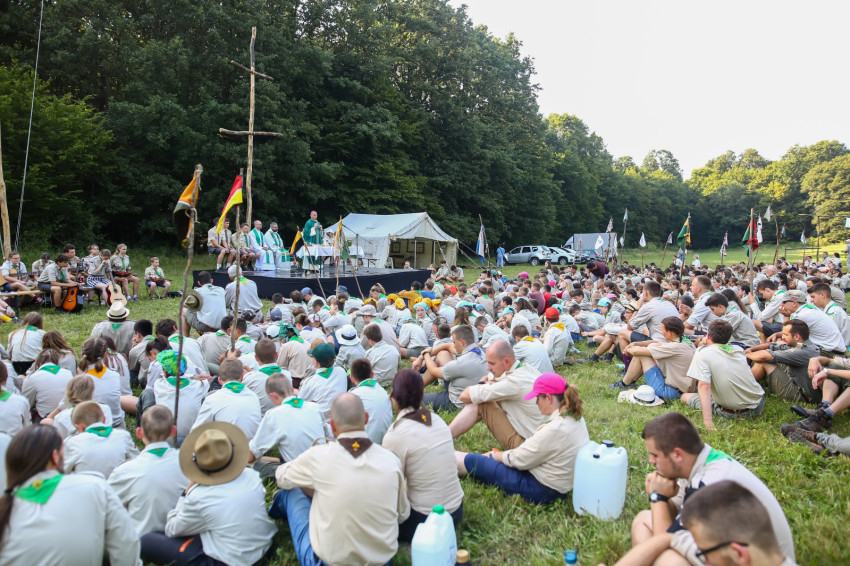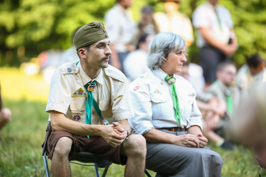 Varga Bálint táborparancsnok a nyitónapról beszélt. Nagy ünnep volt. 43 cserkészjelölt a nagytábor előtt tehetett fogadalmat. „Még egy hét van előttünk, a találkozás, együttlét megannyi élménye.”