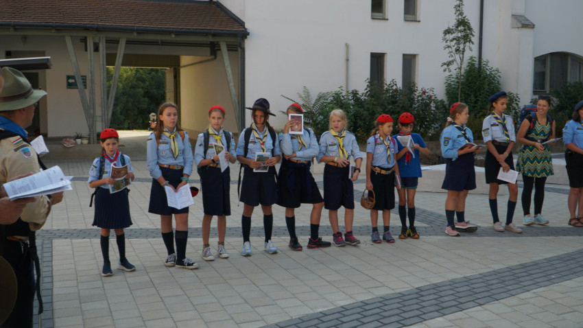 A Szent Liturgiát követően Mosolygó Péter atya, a kegytemplom igazgatója bemutatta a cserkészeknek a bazilikát, a fatemplomot és a rendházat.