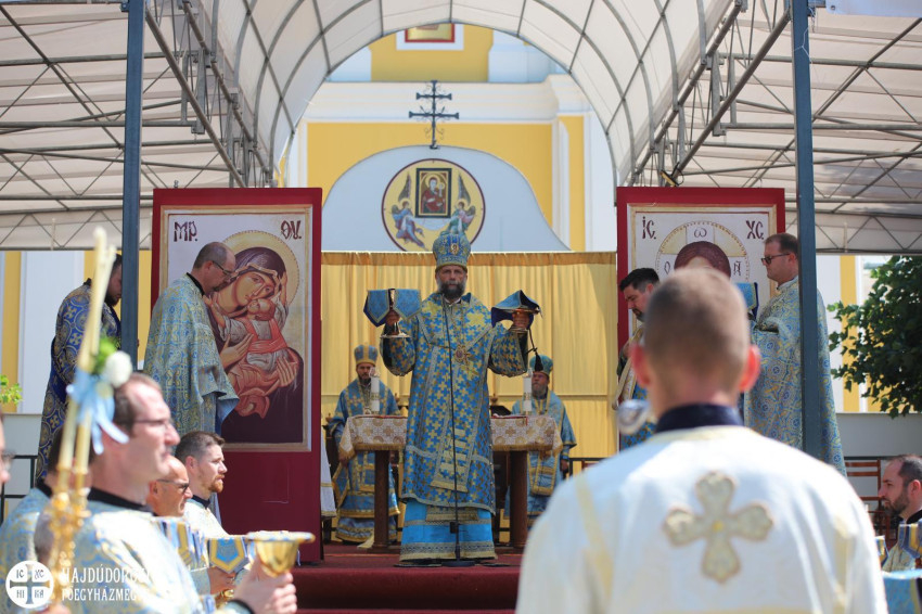 Homíliájának zárásaként Orosz Atanáz püspök megemlékezett arról, hogy pontosan 34 éve szentelték e helyen pappá Kocsis Fülöp érsek-metropolitát kilenc társával együtt. „Értük is imádkozunk, hogy papságuk kiteljesedjék Isten Igéjének maradéktalan és hűséges szolgálatában és megvalósításában. És azért is, hogy továbbra is sok jó papot szentelhessünk itt és szerte az országban. Az imádságban fáradhatatlanul buzgólkodó Istenszülő imáit kérjük magunkért és testvéreinkért, a magukra maradtakért és minden ránk bízottért!”