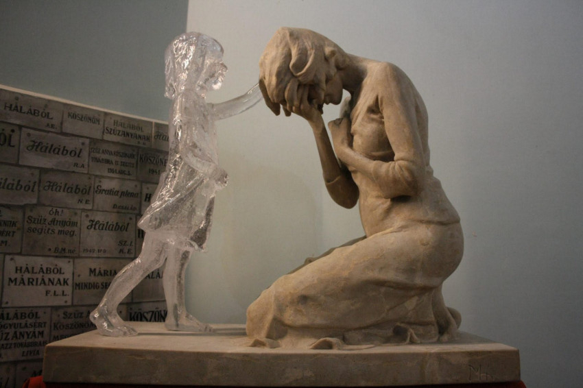 Udvardyné Tóth Lilla biológus, a vándorkiállítás egyik kezdeményezője elmondta: a szobor egy magába roskadó, tenyerét az arcába temető édesanyát és a felé lépő gyermeket ábrázolja. Jelentése, üzenete, hogy van megbocsátás.