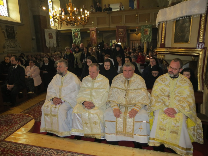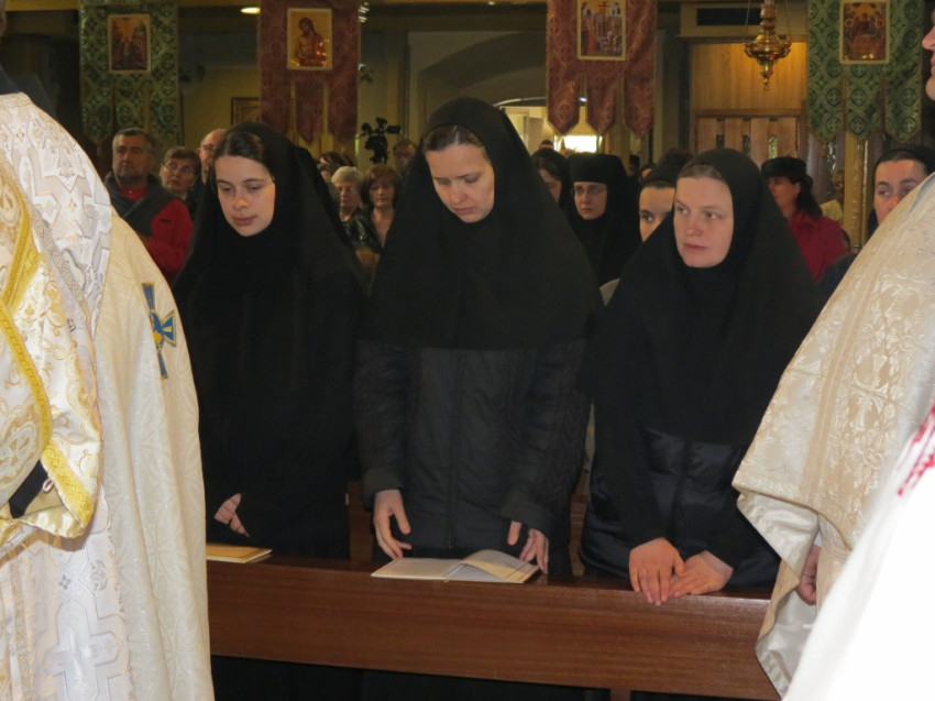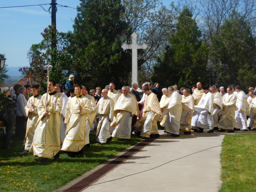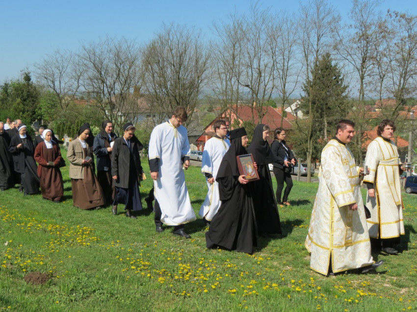 A Szent Liturgiát követően a hívek és a papság körmenetben vonult át a monostorhoz. Kocsis Fülöp érsek-metropolita arra kérte a nővérek, hogy „egyek legyenek az Eucharisztia közösségében és a kenyér megtörésében, a mindenkori közös templomi szolgálatokban. Mindent türelemmel viselve örömben, és a szív egyszerűségében.” Végül Szocska Ábel apostoli kormányzó Szent Pál apostol szavaival fordult a nővérekhez, buzdítva őket a feltámadás örömének hirdetésére.