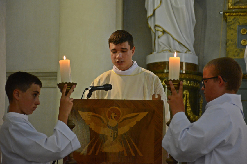 Gulyás Vilmos diakónus a színeváltozás eseményéről elmélkedett. Elmondta, hogy Jézus életének egy olyan pillanatára emlékezünk ezen a napon, amikor megmutatta az Ő isteni dicsőségét. Azt a dicsőséget, amit az emberi természet felvételekor elrejtett, és ami a feltámadáskor is rejtve volt, de a Tábor hegyén megmutatta dicsőségét az Ószövetség két képviselőjének, Mózesnek és Illésnek, valamint a kiválasztott apostoloknak: Péternek, Jánosnak és Jakabnak.