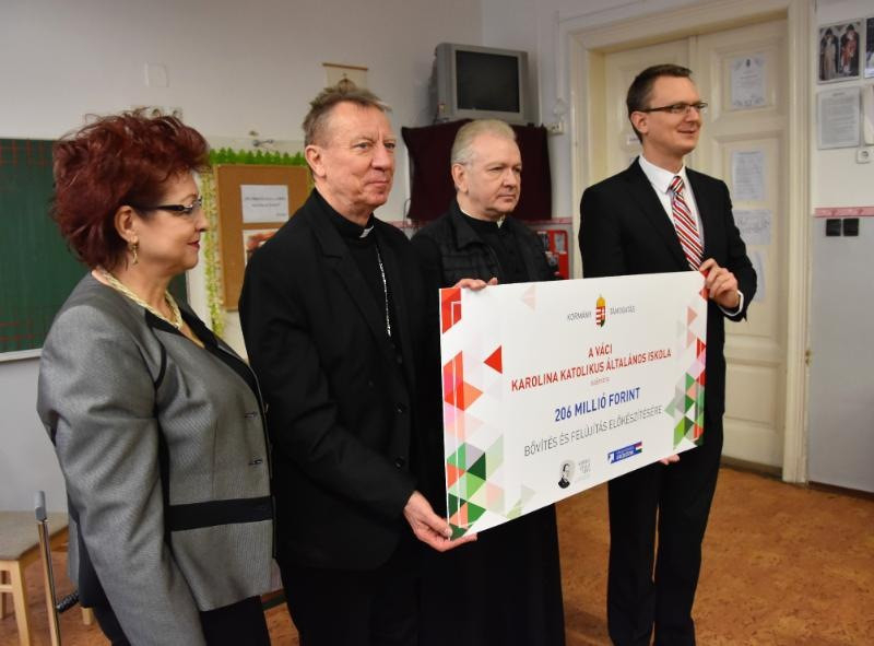 Beer Miklós váci megyéspüspök méltatta az iskolát alapító elődje, Csáky Károly püspök érdemeit. A több mint száz éves múltra visszatekintő intézmény történetében jelentős fejezet lehet a tervezett nagyszabású fejlesztés és bővítés megvalósítása – mondta a főpásztor.