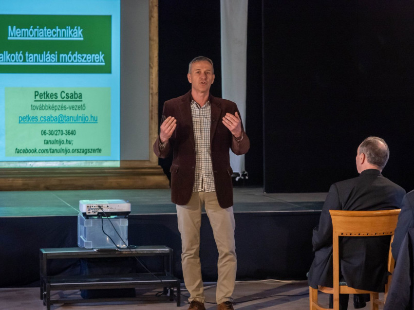 Petkes Csaba bemutatta előadásában a memóriatechnikákat és alkotó tanulási módszereket. Előadásában elmondta, hogy a mai gyerekeket millióféle külső hatás éri, sokszor egyszerre több közösségi oldalon is jelen vannak. Tudjuk, hogy 20–30 év alatt óriásit változott a világ mind az emberi kapcsolatok, mind a technológia terén.